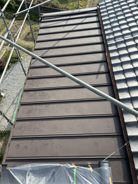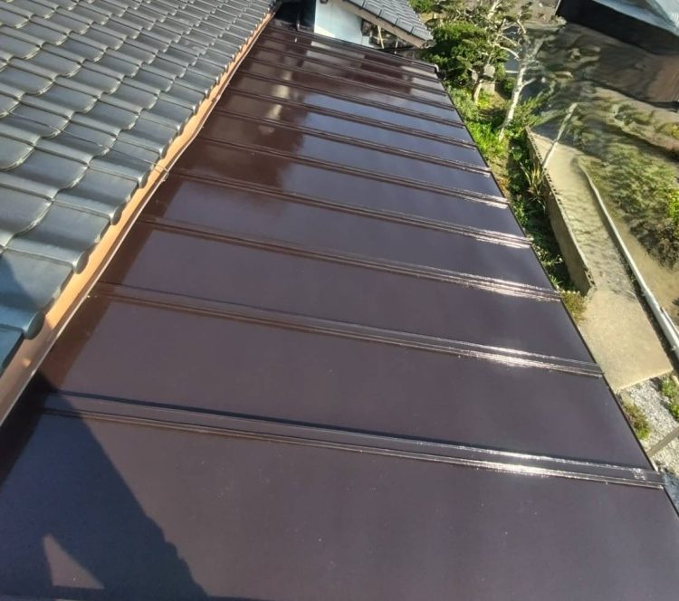 【福岡市西区】塗装工事 AFTER 板金屋根 BEFORE 数年前に塗装したとからと言われていました。 上から写真を撮って見ていただき、雨漏りも気になるとの事で、調査をしてい傷んでいる所は補修しました。